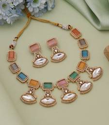 | Product Description | Adjustable Rope | Necklace Length: 26.00 Cm X Width: 4.50 Cm | Earring Length: 4.50 Cm X Width: 3.00 Cm | Metal: Brass With Good Quality Gold Plated | Color: Multi | Stone: American Diamond & Monalisa Stone | Gross Weight: 120.00 Grams | Package Content: 1 Piece Of Necklace/ 1 Pair Of Earring | Back Finding: Post With Friction Back X Earring Style: Dangle |