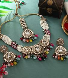 Product Description | Adjustable Rope | Necklace Length: 24.00 Cm X Width: 6.00 Cm | Earring Length: 8.50 Cm X Width: 4.00 Cm | Maang Tikka Length: 14.00 Cm X Width: 4.00 Cm | Metal: Alloy With Good Quality Mehandi Gold Plated | Color: Multi | Stone: Kundan & Imitation Pearl | Gross Weight: 132.00 Grams | Package Content: 1 Piece Of Necklace/1 Pair Of Earring/1 Piece Of Maang Tikka | Back Finding: Post With Friction Back X Earring Style: Dangle |