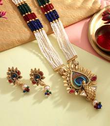 | Product Name | Multi Color Peacock Feather Matte Gold Necklace Set | |