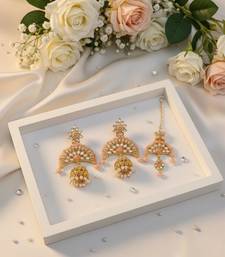 | Product Description | Earring Length: 7.50 Cm X Width: 4.60 Cm | Maang Tikka Length: 14.50 Cm X Width: 3.60 Cm | Metal: Alloy With Good Quality Gold Plated | Color: Peach | Stone: Kundan & Beads | Gross Weight: 51.00 Grams | Package Content: 1 Pair Of Earrings/1 Piece Of Maang Tikka | Back Finding: Post With Friction Back X Earring Style: Jhumka |