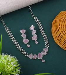 Product Description | Adjustable Chain | Necklace Length: 24.00 Cm X Width: 1.00 Cm | Earring Length: 4.30 Cm X Width: 1.00 Cm | Metal: Brass With Good Quality Silver Plated | Color: Pink | Stone: American Diamond | Gross Weight: 36.00 Grams | Package Content: 1 Piece Of Necklace/ 1 Pair Of Earring | Back Finding: Post With Friction Back X Earring Style: Drop |