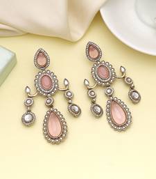 Pink color kundan earrings