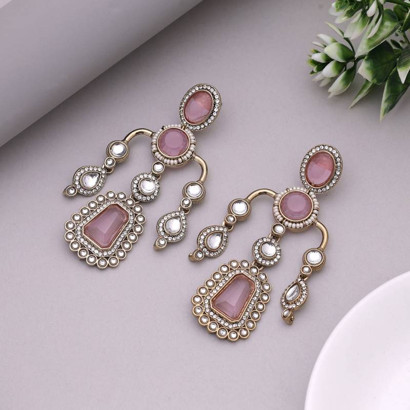 | Product Description | Earring Length: 9.00 Cm X Width: 4.50 Cm | Metal: Alloy With Good Quality Mehendi Gold Plated | Color: Pink | Stone: Kundan | Gross Weight: 50.00 Grams | Package Content: 1 Pair Of Earrings | Back Finding: Post With Friction Back X Earring Style: Dangle |