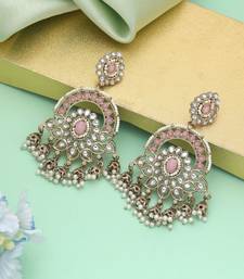 Pink color kundan earrings
