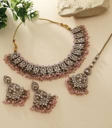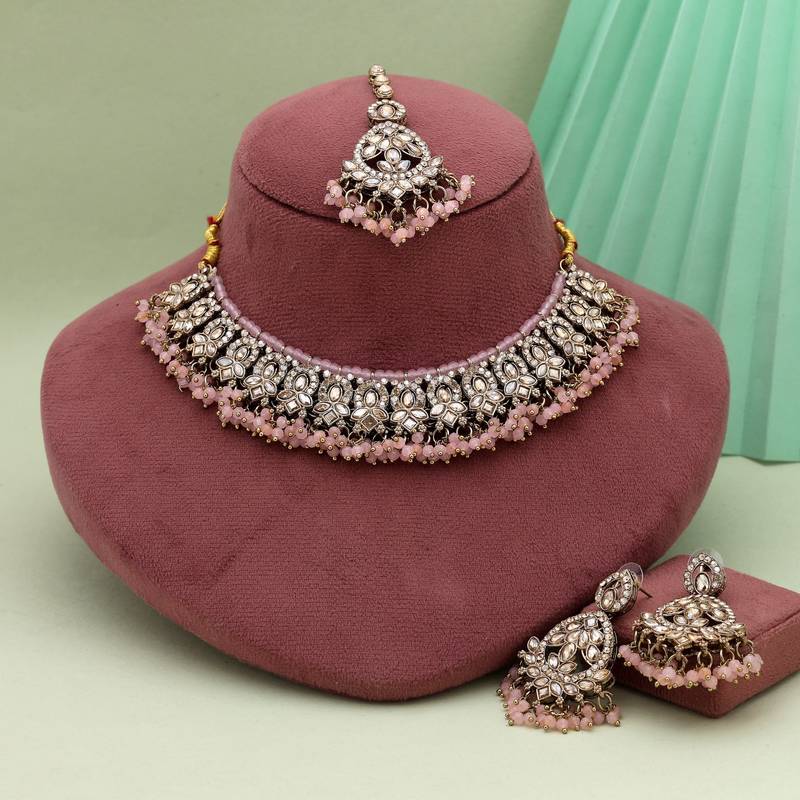 Pink color kundan necklace set