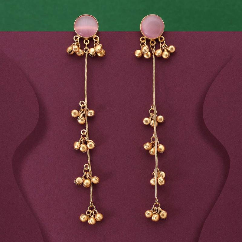 | Product Description | Earring Length: 13.30 Cm X Width: 2.70 Cm Metal: Brass With Good Quality Gold Plated | Color: Pink | Stone: Monalisha Stone | Gross Weight: 20.00 Grams | Package Content: 1 Pair Of Earring | Back Finding: Post With Friction Back | Earring Style: Drop |