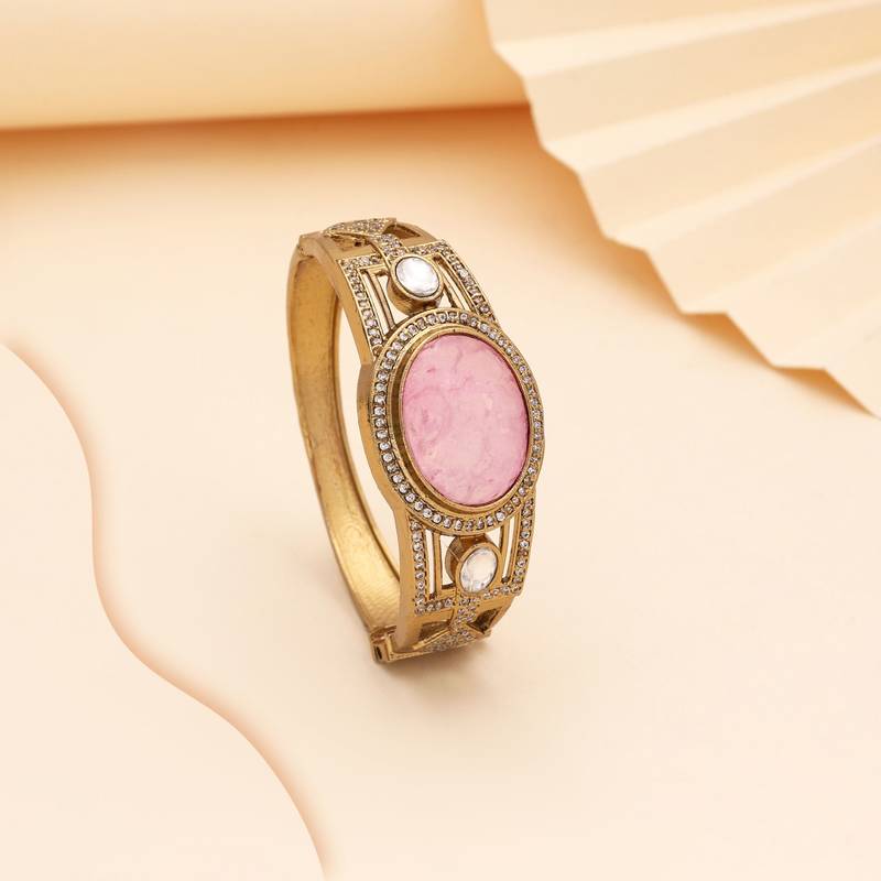| Product Description | Bracelet Size: 2.6 | Metal: Brass With Good Quality Gold Plated | Color: Pink | Stone: American Diamond & Monalisa Stone | Gross Weight: 35.00 Grams | Package Content: 1 Piece Of Bracelet |