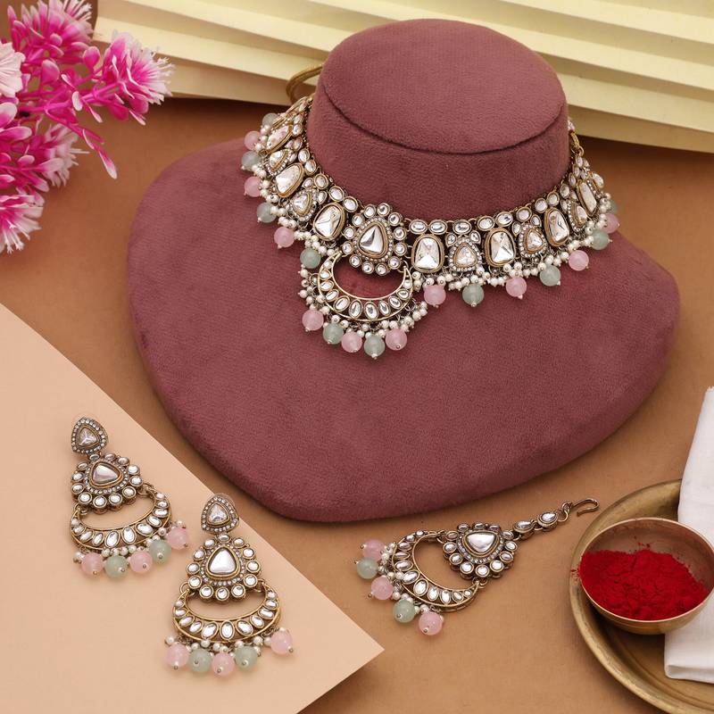 Product Name | Pink & Pista Green Color Kundan Necklace Set | |
