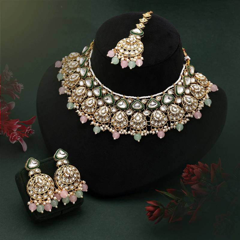 Product Name | Pink & Pista Green Color Kundan Necklace Set | |