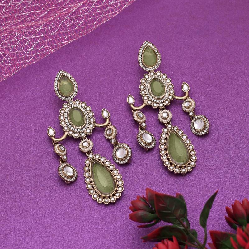 | Product Name | Pista Green Color Kundan Earrings | |