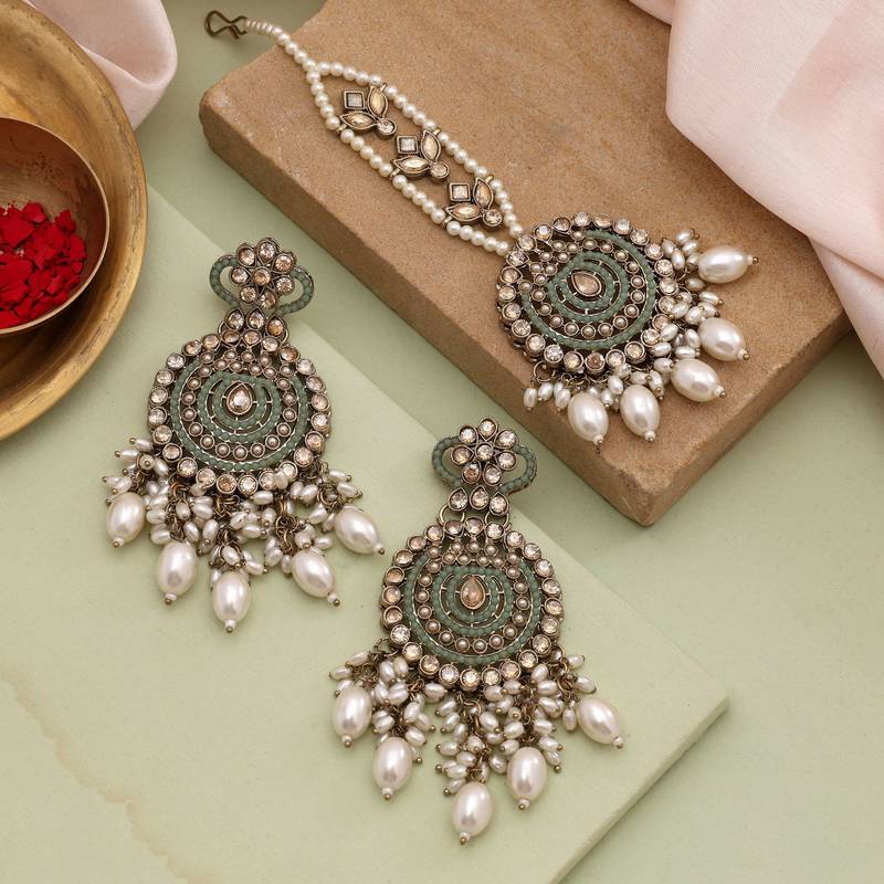 | Product Name | Pista Green Color Kundan Earrings Tikka Set | |