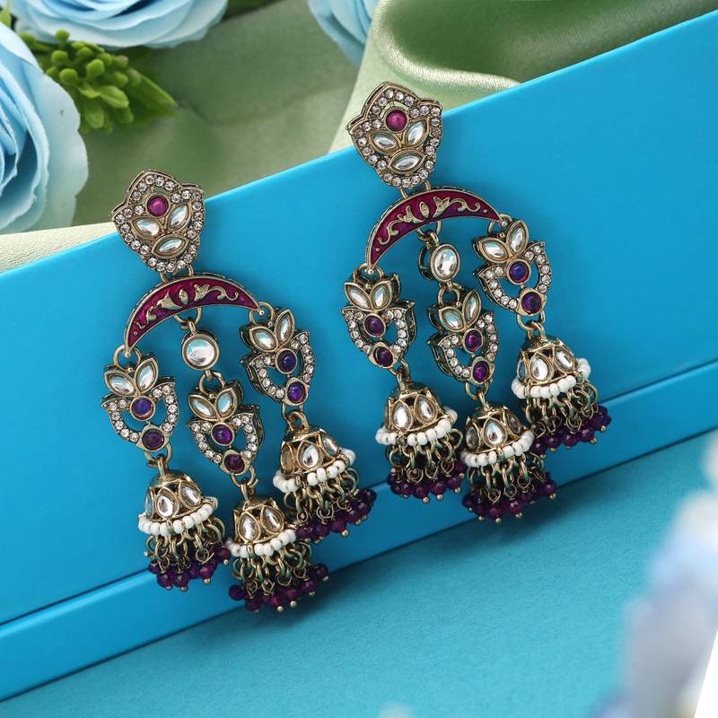 | Product Description | Earring Length: 8.00 Cm X Width: 3.50 Cm | Metal: Alloy With Good Quality Mehndi Gold Plated | Color: Purple | Stone: Kundan & Beads | Gross Weight: 45.00 Grams | Package Content: 1 Pair Of Earring | Back Finding: Post With Friction Back X Earring Style: Dangle |