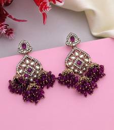 Product Description | Earring Length: 6.50 Cm X Width: 3.50 Cm | Metal: Alloy With Good Quality Mehndi Gold Plated | Color: Purple | Stone: Kundan & Imitation Pearl | Gross Weight: 42.00 Grams | Package Content: 1 Pair Of Earring | Back Finding: Post With Friction Back X Earring Style: Jhumki |