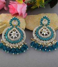 Earring Length: 6.50 Cm X Width: 4.00 Cm | Metal: Alloy With Good Quality Gold Plated | Color: Rama Green | Stone: Kundan & Imitation Pearl | Gross Weight: 34.00 Grams | Package Content: 1 Pair Of Earrings | Back Finding: Post With Friction Back X Earring Style: Dangle