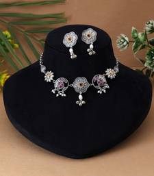 | Product Name | Rani Color Choker Dual Tone Oxidised Necklace Set Crafted With Bold Artistic Oxidised Metal Detailing | |