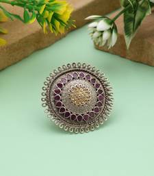 Ring Size: Adjustable | Diameter Length: 4.70 Cm X Width: 4.70 Cm | Metal: Brass With Good Quality Gold & Silver Plated | Color: Rani | Stone: Glass Stone | Gross Weight: 20.00 Grams | Package Content: 1 Piece Of Ring