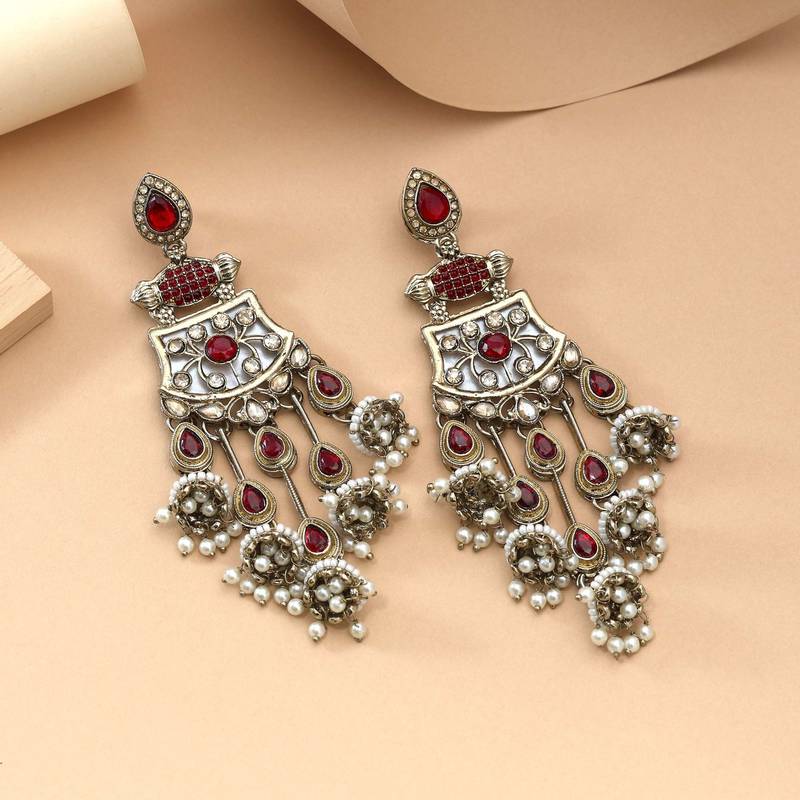 | Product Description | Earring Length: 11.00 Cm X Width: 3.30 Cm | Metal: Alloy With Good Quality Mehndi Gold Plated | Color: Rani | Stone: Kundan & Beads | Gross Weight: 64.00 Grams | Package Content: 1 Pair Of Earring | Back Finding: Post With Friction Back X Earring Style: Dangle |