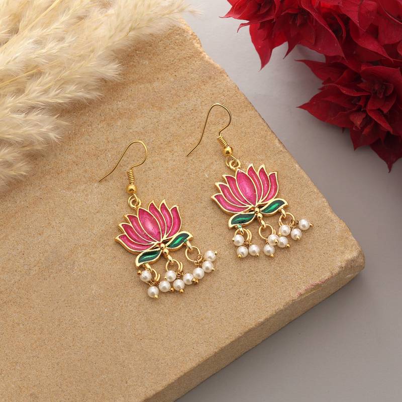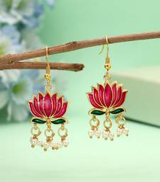 Earring Lengt6h: 4.60 Cm X Width: 2.00 Cm | Metal: Alloy With Good Quality Gold Plated | Color: Rani | Stone: Beads | Gross Weight: 7.00 Grams | Package Content: 1 Pair Of Earring | Back Finding: Fish Hook X Earring Style: Drop