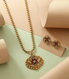 | Product Description | Necklace Length: 40.00 Cm X Width: 0.30 Cm | Pendant Length: 3.50 Cm X Width: 4.00 Cm | Earring Length: 1.60 Cm X Width: 2.00 Cm | Metal: Alloy With Good Quality Matte Gold Plated | Color: Rani | Stone: Glass Stone | Gross Weight: 32.00 Grams | Package Content: 1 Piece Of Necklace/1 Pair Of Earrings | Back Finding: Post With Friction Back X Earring Style: Drop |