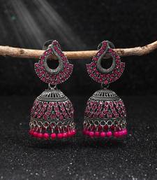 Product Description | Earring Length: 5.50 Cm X Width: 2.50 Cm | Metal: Alloy With Good Quality Silver Plated | Color: Rani | Stone: Glass Stone | Gross Weight: 19.00 Grams | Package Content: 1 Pair Of Earring | Back Finding: Post With Friction Back X Earring Style: Jhumka |