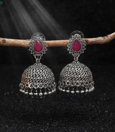 Product Description | Earring Length: 4.20 Cm X Width: 2.50 Cm | Metal: Alloy With Good Quality Silver Plated | Color: Rani | Stone: Glass Stone | Gross Weight: 17.00 Grams | Package Content: 1 Pair Of Earring | Back Finding: Post With Friction Back X Earring Style: Jhumka |