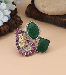 Product Name Rani & Green Color Dual Tone Oxidised Rings Crafted With Vibrant Contrasting Hues And Ornate Oxidised Metalwork