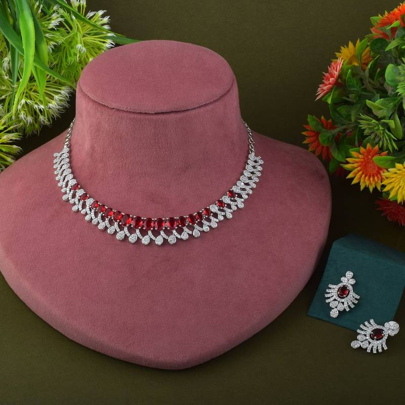Product Description | Adjustable Chain | Necklace Length: 20.00 Cm X Width: 1.70 Cm | Earring Length: 3.00 Cm X Width: 2.00 Cm | Metal: Brass With Good Quality Silver Plated | Color: Red | Stone: American Diamond | Gross Weight: 38.00 Grams | Package Content: 1 Piece Of Necklace/ 1 Pair Of Earring | Back Finding: Post With Friction Back X Earring Style: Drop |