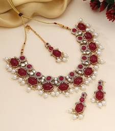 | Product Description | Adjustable Rope | Necklace Length: 22.00 Cm X Width: 4.00 Cm | Earring Length: 4.30 Cm X Width: 2.00 Cm | Maang Tikka Length: 14.00 Cm X Width: 2.00 Cm | Metal: Alloy With Good Quality Gold Plated | Color: Red | Stone: Kundan & Beads | Gross Weight: 100.00 Grams | Package Content: 1 Piece Of Necklace/1 Pair Of Earrings/1 Piece Of Maang Tikka | Back Finding: Post With Friction Back X Earring Style: Dangle |
