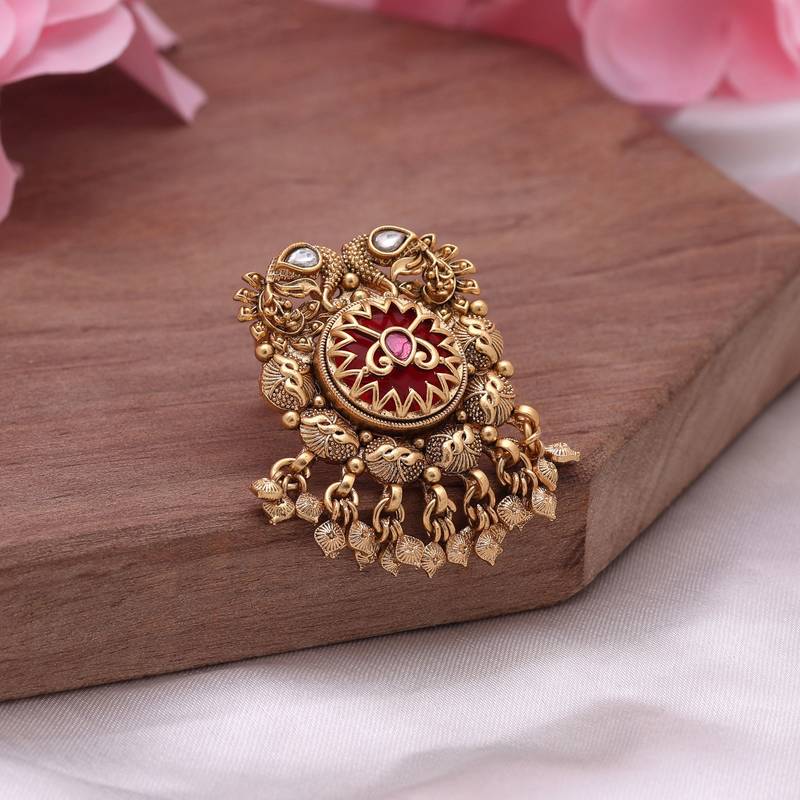 | Product Description | Ring Size: Adjustable | Diameter Length: 3.00 Cm X Width: 4.50 Cm | Metal: Alloy With Good Quality Gold Plated | Color: Red | Stone: Glass Stone | Gross Weight: 17.00 Grams | Package Content: 1 Piece Of Rings |
