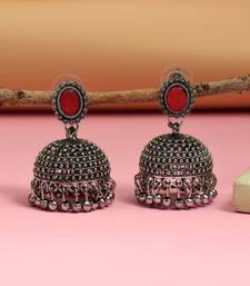 Product Description | Earring Length: 4.00 Cm X Width: 2.50 Cm | Metal: Alloy With Good Quality Silver Plated | Color: Red | Stone: Glass Stone | Gross Weight: 17.00 Grams | Package Content: 1 Pair Of Earring | Back Finding: Post With Friction Back X Earring Style: Jhumka |