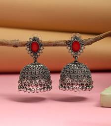 Product Description | Earring Length: 4.20 Cm X Width: 2.50 Cm | Metal: Alloy With Good Quality Silver Plated | Color: Red | Stone: Glass Stone | Gross Weight: 20.00 Grams | Package Content: 1 Pair Of Earring | Back Finding: Post With Friction Back X Earring Style: Jhumka |