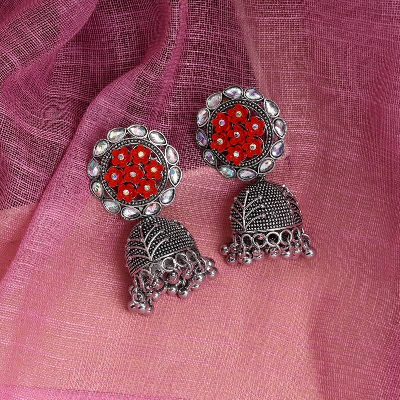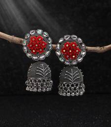 Product Description | Earring Length: 5.30 Cm X Width: 2.00 Cm | Metal: Alloy With Good Quality Silver Plated | Color: Red | Stone: Glass Stone | Gross Weight: 21.00 Grams | Package Content: 1 Pair Of Earring | Back Finding: Post With Friction Back X Earring Style: Jhumka |