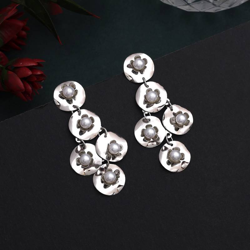 Product Description | Earring Length: 6.00 Cm X Width: 3.00 Cm | Metal: Alloy With Good Quality Silver Plated | Color: Silver | Stone: Beads | Gross Weight: 15.00 Grams | Package Content: 1 Pair Of Earrings | Back Finding: Post With Friction Back X Earring Style: Dangle |