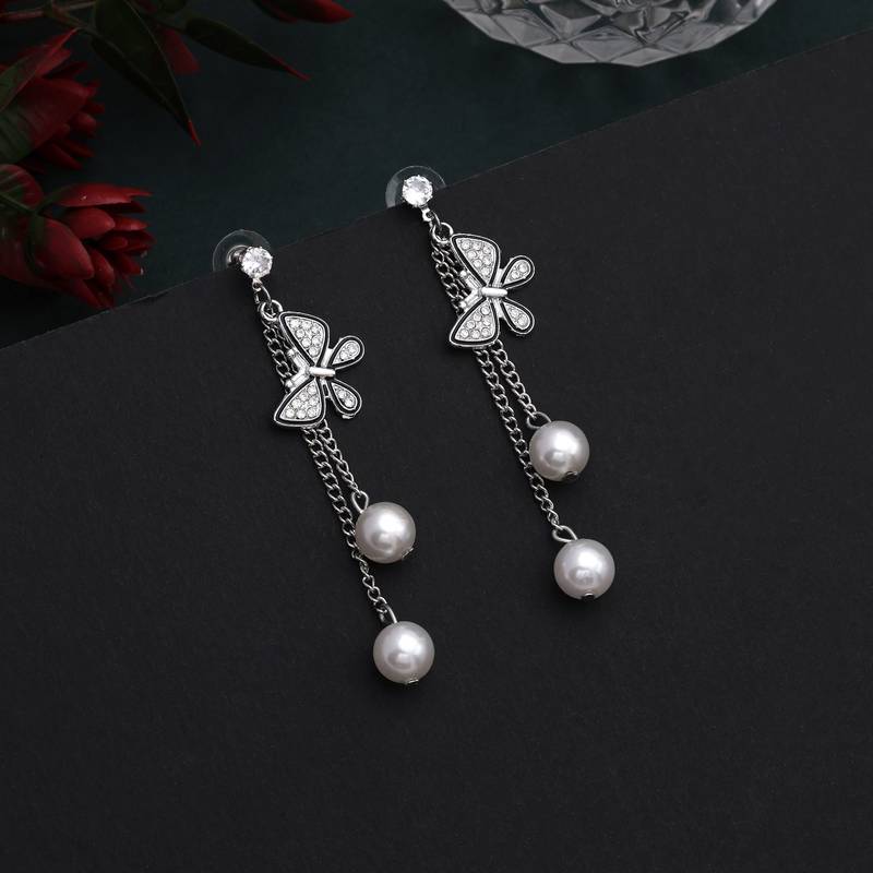 Product Description | Earring Length: 7.50 Cm X Width: 1.50 Cm | Metal: Alloy With Good Quality Silver Plated | Color: Silver | Stone: Glass Stone & Imitation Pearl | Gross Weight: 9.00 Grams | Package Content: 1 Pair Of Earrings | Back Finding: Post With Friction Back X Earring Style: Drop |