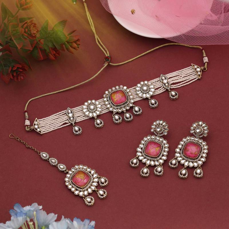 | Product Name | Stunning Rani Color Choker Kundan Necklace Set Offering A Royal And Graceful Appearance | |