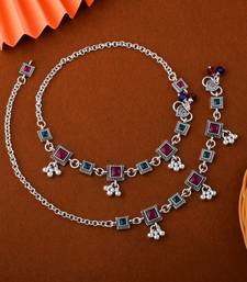 Product Description | Anklet Length: 29.00 Cm X Width: 2.00 Cm | Metal: Alloy With Good Quality Silver Plated | Color: Maroon &Amp; Green | Stone: Glass Stone | Gross Weight: 31.00 Grams | Package Content: 1 Pair Of Anklet | Care Instruction : Avoid Heat &Amp; Chemicals Like Perfume, Deo, Alcohol, Etc. | Clean With Dry Cotton Cloth | Pack In An Air Tight Container After Use. |