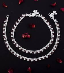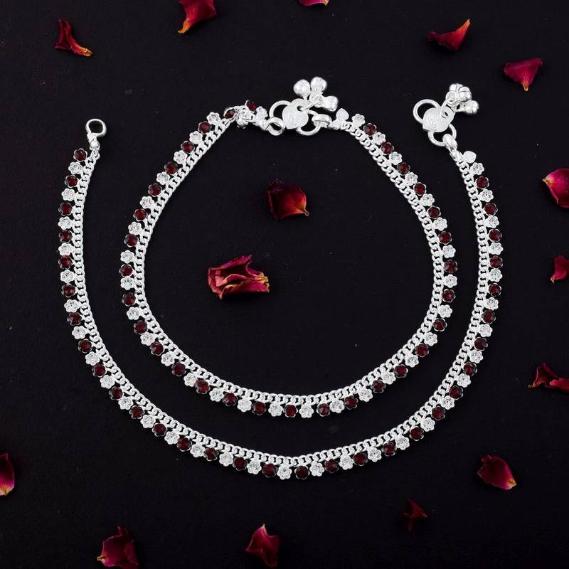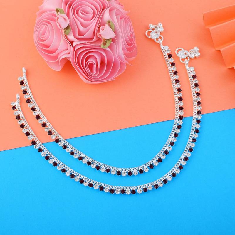 Product Description | Anklets Length: 26.00 Cm X Width: 0.60 Cm | Metal: Brass With Good Quality Silver Plated | Color: Maroon | Stone: Rhinestone | Gross Weight: 35.00 Grams | Package Content: 1 Pair Of Anklets |
