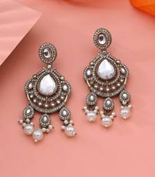 | Product Description | Earring Length: 8.00 Cm X Width: 3.50 Cm | Metal: Alloy With Good Quality Mehndi Gold Plated | Color: White | Stone: Kundan & Imitation Pearl | Gross Weight: 37.00 Grams | Package Content: 1 Pair Of Earrings | Back Finding: Post With Friction Back X Earring Style: Dangle |