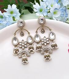 Earring Length: 9.50 Cm X Width: 4.50 Cm | Metal: Alloy With Good Quality Mehndi Gold Plated | Color: White | Stone: Kundan & Beads | Gross Weight: 55.00 Grams | Package Content: 1 Pair Of Earring | Back Finding: Post With Friction Back X Earring Style: Dangle