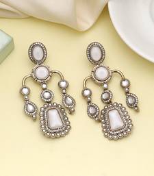 | Product Description | Earring Length: 9.00 Cm X Width: 4.50 Cm | Metal: Alloy With Good Quality Mehendi Gold Plated | Color: White | Stone: Kundan | Gross Weight: 50.00 Grams | Package Content: 1 Pair Of Earrings | Back Finding: Post With Friction Back X Earring Style: Dangle |