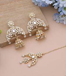 | Product Description | Earring Length: 7.00 Cm X Width: 3.50 Cm | Maang Tikka Length: 15.00 Cm X Width: 4.30 Cm | Metal: Alloy With Good Quality Gold Plated | Color: White | Stone: Kundan & Beads | Gross Weight: 51.00 Grams | Package Content: 1 Pair Of Earrings/1 Piece Of Maang Tikka | Back Finding: Post With Friction Back X Earring Style: Jhumka |