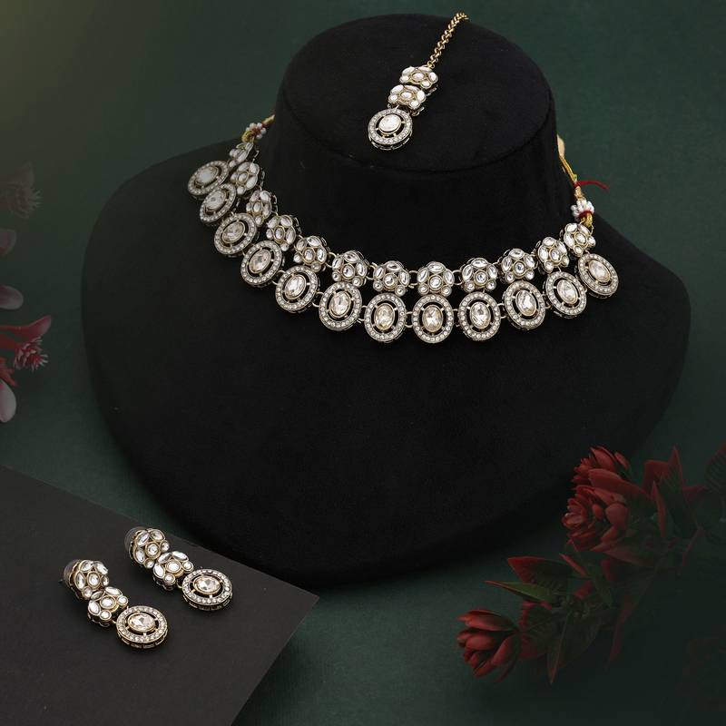 Product Description | Adjustable Rope | Necklace Length: 16.00 Cm X Width: 2.70 Cm | Earring Length: 4.50 Cm X Width: 1.50 Cm | Maang Tikka Length: 13.00 Cm X Width: 1.50 Cm | Metal: Alloy With Good Quality Mehandi Gold Plated | Color: White | Stone: Kundan | Gross Weight: 81.00 Grams | Package Content: 1 Piece Of Necklace/1 Pair Of Earring/1 Piece Of Maang Tikka | Back Finding: Post With Friction Back X Earring Style: Drop |