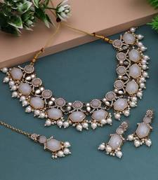 | Product Description | Adjustable Rope | Necklace Length: 22.00 Cm X Width: 4.00 Cm | Earring Length: 4.30 Cm X Width: 2.00 Cm | Maang Tikka Length: 14.00 Cm X Width: 2.00 Cm | Metal: Alloy With Good Quality Gold Plated | Color: White | Stone: Kundan & Beads | Gross Weight: 100.00 Grams | Package Content: 1 Piece Of Necklace/1 Pair Of Earrings/1 Piece Of Maang Tikka | Back Finding: Post With Friction Back X Earring Style: Dangle |