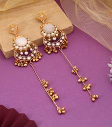 | Product Description | Earring Length: 20.00 Cm X Width: 4.30 Cm Metal: Brass With Good Quality Gold Plated | Color: White | Stone: Monalisha Stone & Kundan | Gross Weight: 57.00 Grams | Package Content: 1 Pair Of Earring | Back Finding: Post With Friction Back | Earring Style: Dangle |