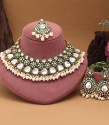 Product Description | Adjustable Rope | Necklace Length: 22.00 Cm X Width: 6.00 Cm | Earring Length: 7.50 Cm X Width: 4.00 Cm | Metal: Alloy With Good Quality Gold Plated | Color: White | Stone: Kundan & Imitation Pearl | Gross Weight: 222.00 Grams | Package Content: 1 Piece Of Necklace/1 Pair Of Earring/1 Piece Of Maang Tikka | Back Finding: Post With Friction Back X Earring Style: Dangle |