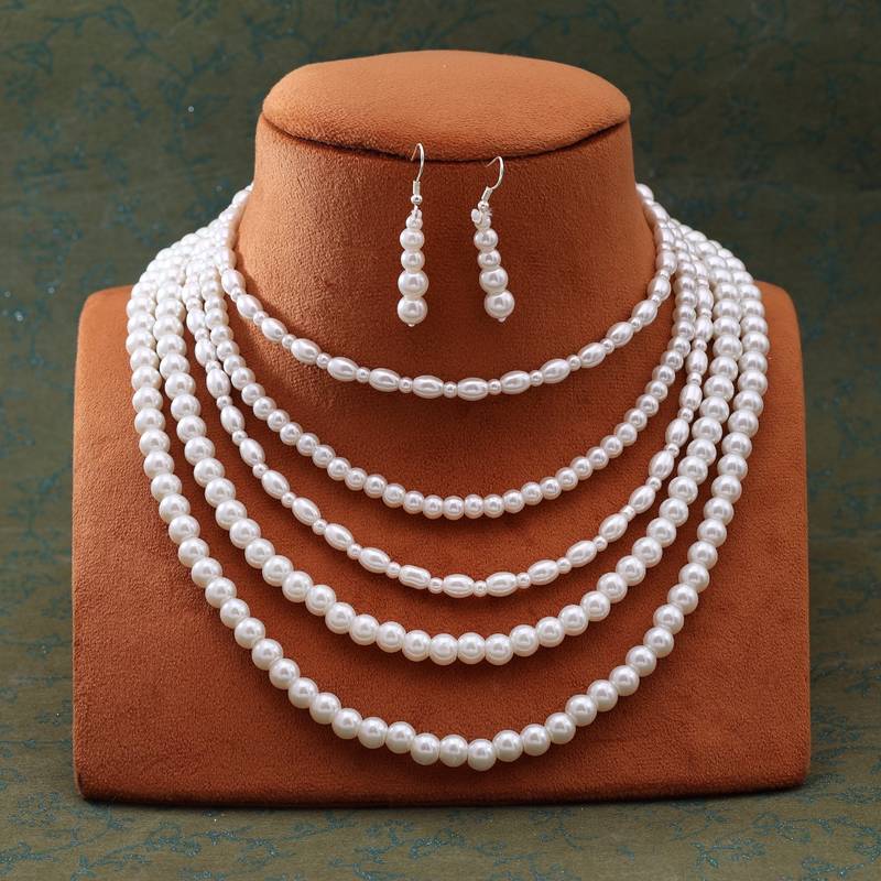 | Product Description | Adjustable Rope | Necklace Length: 44.00 Cm X Width: 3.20 Cm | Earring Length: 4.60 Cm X Width: 0.80 Cm | Metal: Alloy With Good Quality Gold Plated | Color: White | Stone: Imitation Pearl | Gross Weight: 138.00 Grams | Package Content: 1 Piece Of Necklace/1 Pair Of Earrings | Back Finding: Fishhook X Earring Style: Drop |