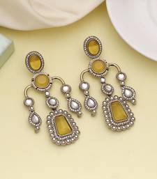 Yellow color kundan earrings