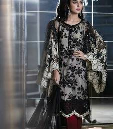 Black embroidered georgette semi stitched salwar with dupatta