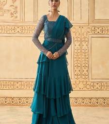 | Product Name | Teal Blue Layered Lehenga With Bead Work Blouse And Belt | |