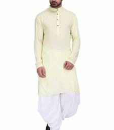 | Product Name | Light Yellow Rayon Kurta Paired With White Cotton Dhoti Style Salwar | |
